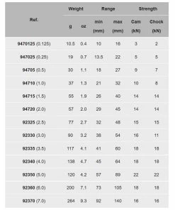 Look on the rack of most experienced trad climbers and you are almost certain to see a pink and a red Tricam, possibly two of each and a few others too. Most climbers agree that visiting the Gunks without multiples of pink through purple is a serious mistake. These wondrous nuts can be used either as cams or nuts and often work where nothing else fits. Tricams are ideal in horizontal cracks, pockets, and shallow vertical cracks. The larger sizes are an affordable way to augment a rack of cams; ideal for belay anchors due to their high strength and low weight. Tricams can also be placed in icy cracks where regular cams do not work.