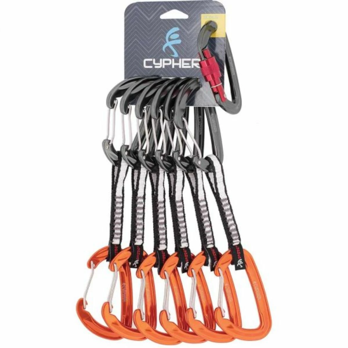 The Cypher Firefly II Quickdraw makes no compromises in function or safety with its hot forged technology that puts the load bearing material where it counts to maximize strength and minimize weight. Lighten up your backcountry rack with these full-size and light-weight quickdraws. The Wire version features a wire-gate Firefly II carabiner on both ends to slim down the weight and provide wide gate-clearance for clipping into various types of protection and ropes. Sold as a package of 6; includes a Firefly II Screw Lock carabiner.