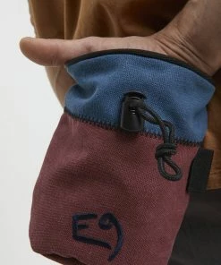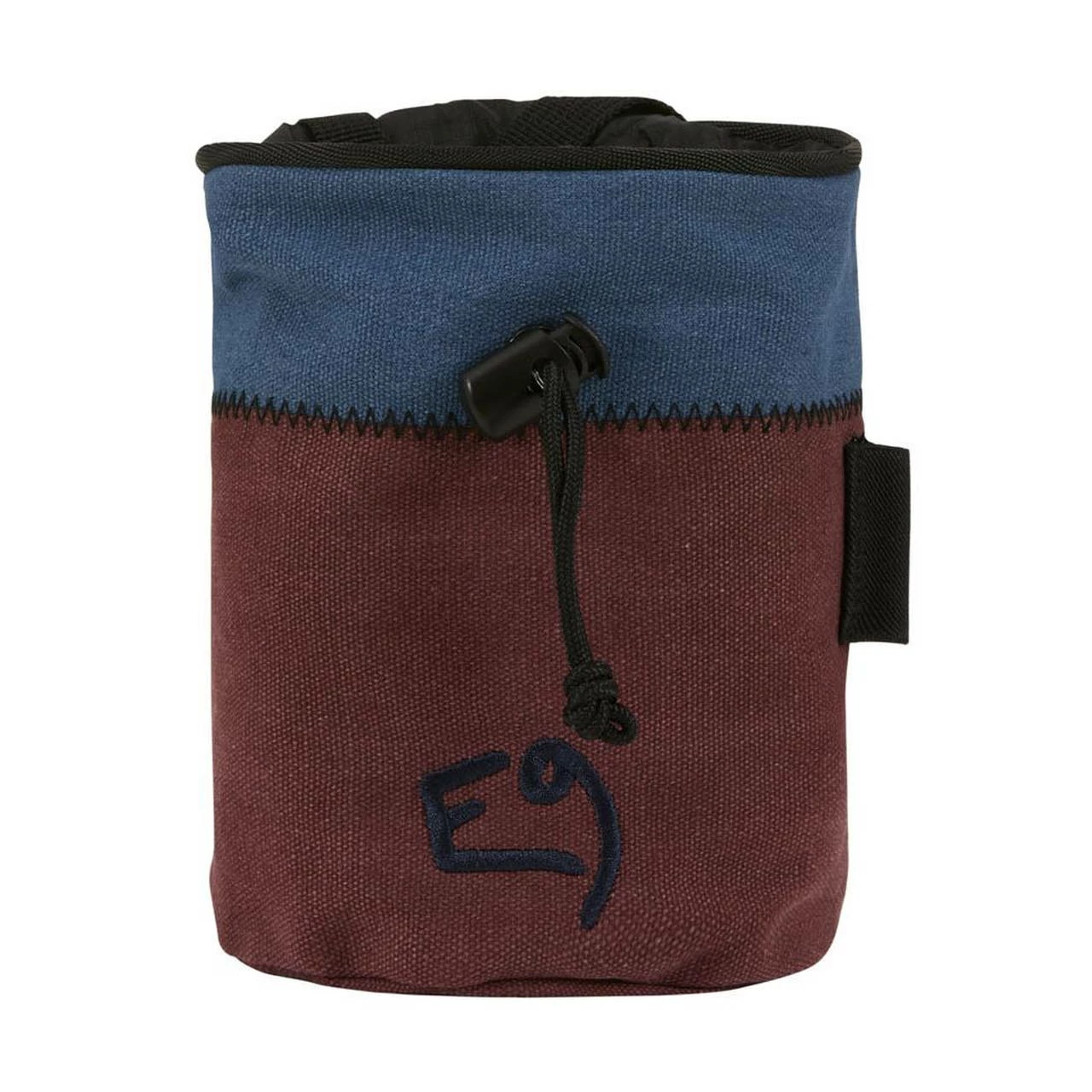 The Aglio C is a big cylindrical chalk bag with color-contrasted E9 embroidery on the front.